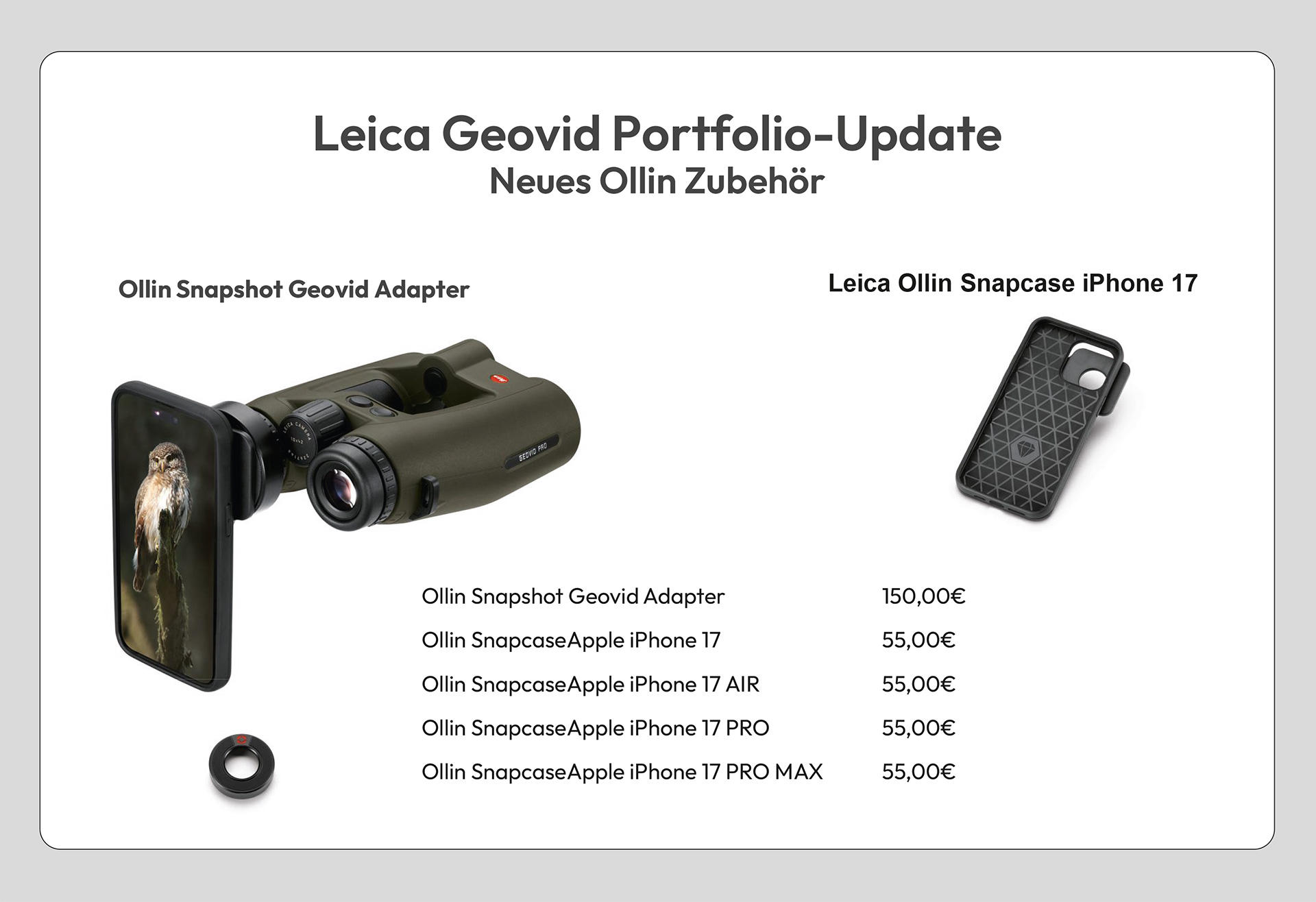 Ollin Snapshot Geovid Adapter und Ollin Snapcase für das Apple iPhone 17